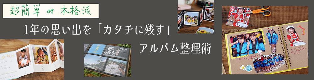 ひと月の写真からベストな1枚だけを貼る「超簡単・手軽なアルバム」や、写真やシールを切り貼りしてガッツリ作りこむ「本格的なスクラップアルバム」など、さまざまなタイプのアルバムをご紹介します!